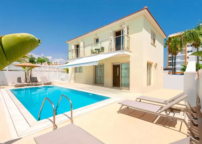 Villa Aurora - 100M From Pernera Beach med 2 sovrum erbjuder en pool och närhet till Kalamies strand, som ligger ungefär 10 minuters promenad bort. Villan med 2 badrum, som ligger 7 km från Grekiska uddens nationella skogspark, erbjuder Wi Fi och en parkering.
